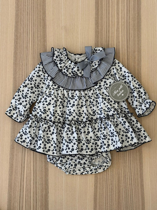 Abito con fiori blu e fiocco sul collo