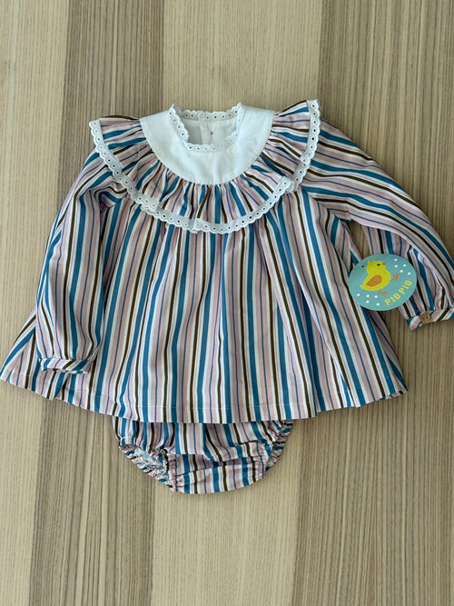 Abito a righe con colla con vollant